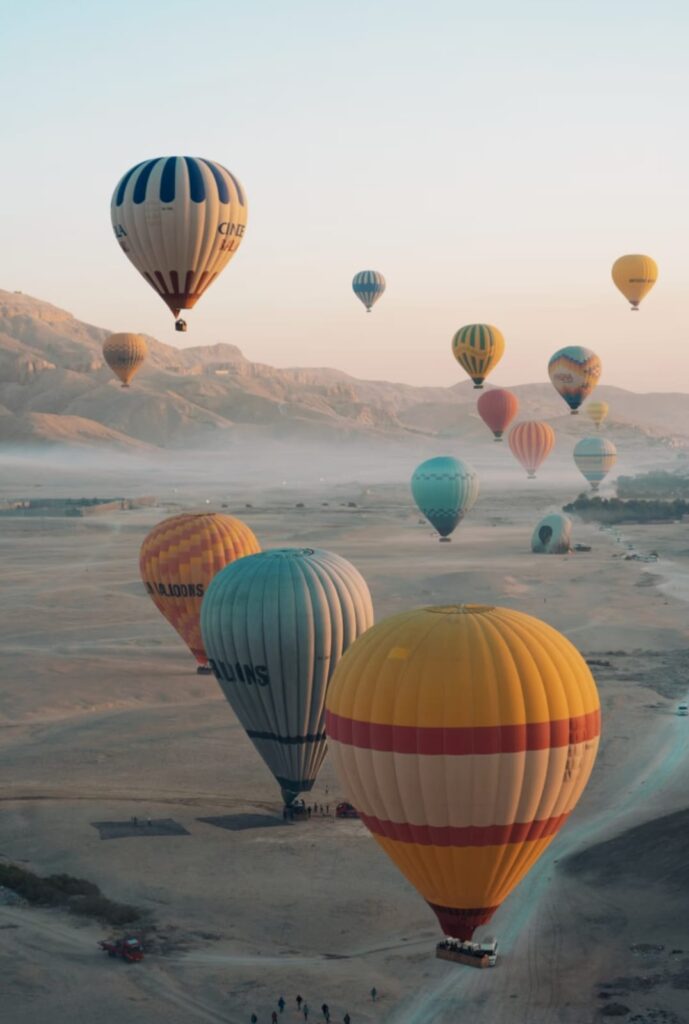 Before the break of dawn, just as the sun begins to paint the sky with its golden hues, you’ll ascend to an awe-inspiring view of the West Bank. Witness the ancient city of Luxor awaken, watch as the first rays illuminate the sand-covered tombs, majestic monuments, the tranquil Nile, and the temples. Depending on the weather, your captivating journey could last anywhere between 40 to 60 minutes.